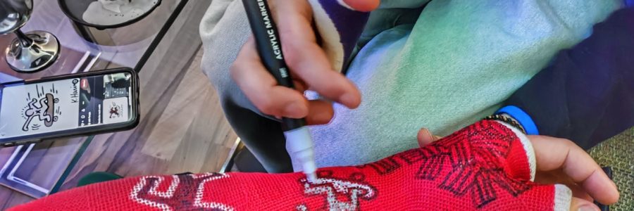 A small #CastFest with my fellow caster mar.cast in Hamburg. We both hat a #lats: mine was a #red one on the left and he got a #purple one on the right wing. I got some beautiful drawings on my cast from him. He’s really a genius in sketching on the cast. We went out for clubbing and had a great and long kinky party night.
